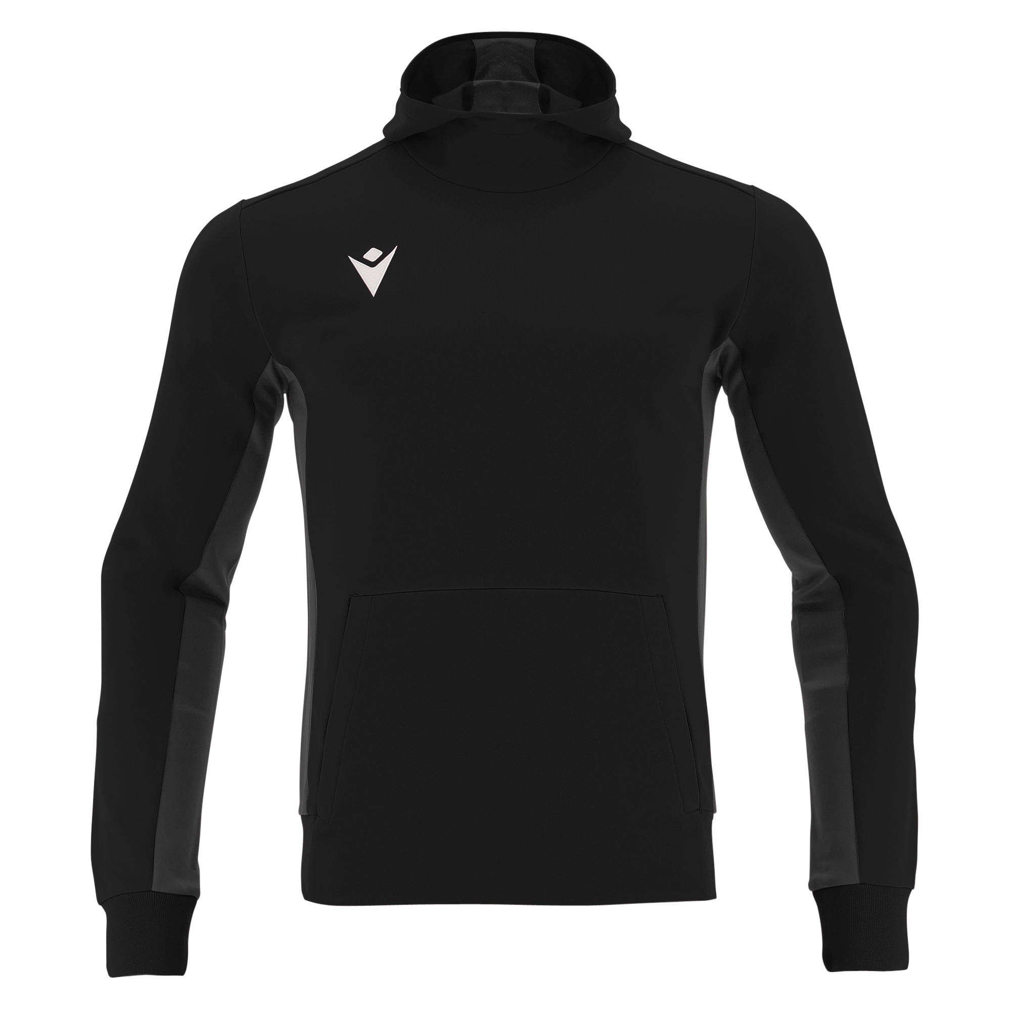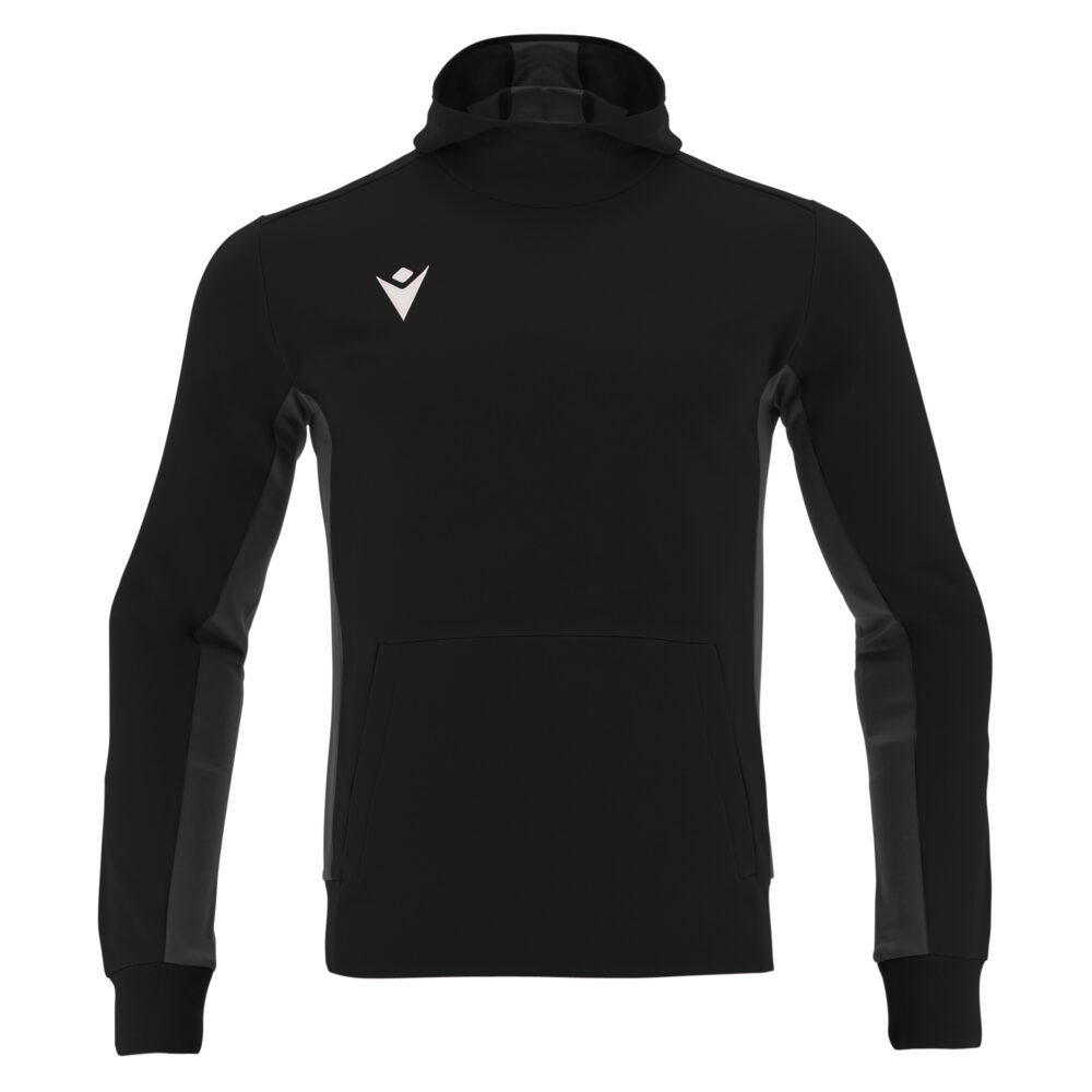 Kõrge kaeluse, kapuutsi ja känguru taskuga mugav pusa.